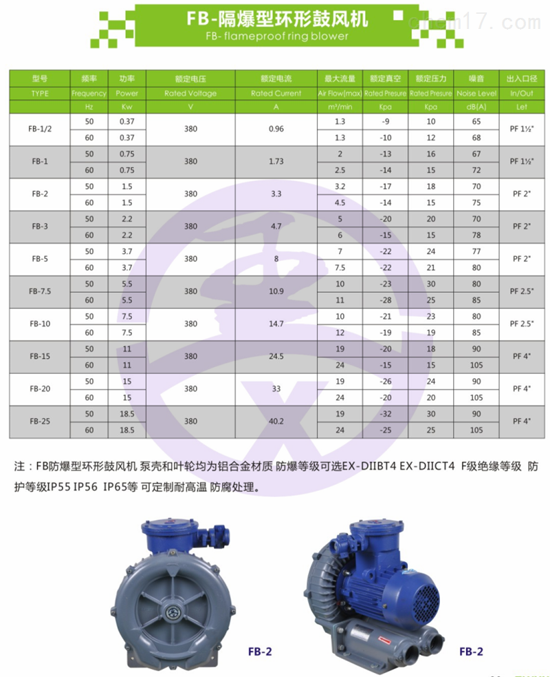 防爆風(fēng)機(jī)特點(diǎn):防爆風(fēng)機(jī)用于可燃?xì)怏w濃度高、需要通風(fēng)的場(chǎng)所,如地下煤礦、鍋爐房等。防爆風(fēng)機(jī)工藝要求:在風(fēng)機(jī)啟動(dòng)和運(yùn)行過程中,電機(jī)接線端子產(chǎn)生的火花,定子和轉(zhuǎn)子或其他部件不接觸外部易燃易爆氣體,導(dǎo)致安全事故。旋轉(zhuǎn)部件(風(fēng)機(jī)葉輪為塑料或鋁)在特殊情況下與殼體摩擦?xí)r不會(huì)產(chǎn)生火花,以免點(diǎn)燃可燃?xì)怏w造成嚴(yán)重后果。當(dāng)然,防爆風(fēng)扇需要由防爆電機(jī)驅(qū)動(dòng)。